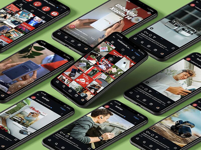 Egal, ob Instagram oder Facebook, ob TikTok oder LinkedIn: Wir produzieren Content für sämtliche Social-Media-Auftritte von MediaMarkt.